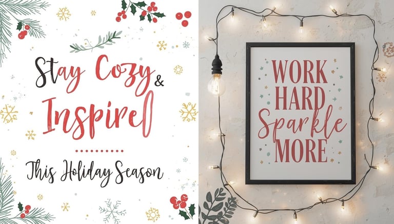 A framed holiday printable is a polished and inexpensive way to decorate your office for Christmas. Simply print a seasonal quote such as “Merry & Bright,” “Work Hard, Be Merry,” or “Cozy Christmas Vibes,” and place it in a small frame on your desk or shelf. This type of decor looks clean and intentional, making it perfect for professional settings. You can easily switch out the print every season, giving your workspace a fresh update without buying new items. It’s one of the most budget-friendly ways to create a festive office environment.
