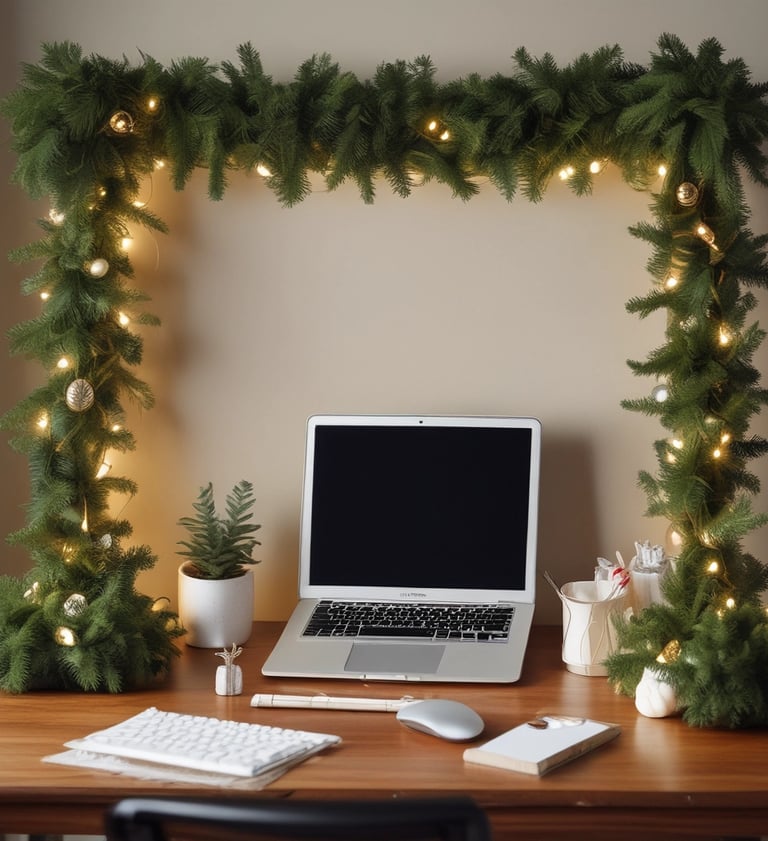 Battery-powered warm fairy lights are a must-have for anyone who wants to add a holiday glow without dealing with tangled cords or clutter. Simply drape the lights around your monitor stand, across your bulletin board, or along your desk edges. The gentle golden light creates a calming atmosphere that is perfect for early morning tasks or late-night deadlines. Because they run on batteries, these lights work in any office setup — no outlets needed. They add a subtle, elegant Christmas touch that looks professional, modern, and minimalist.