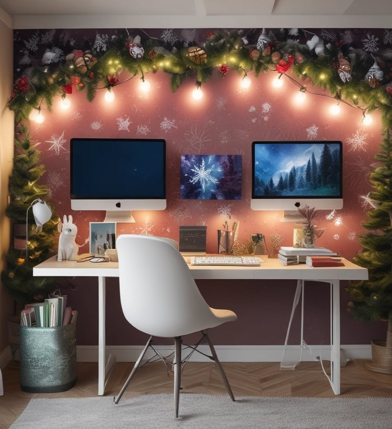 If your office has strict decor rules or you simply prefer a clutter-free workspace, changing your screen wallpaper to a festive design is an excellent option. A desktop background featuring snowflakes, winter landscapes, or cozy Christmas lights can instantly elevate your mood every time you log in. This type of decoration doesn’t take up any physical space, making it perfect for small desks or shared offices where minimalism is key.