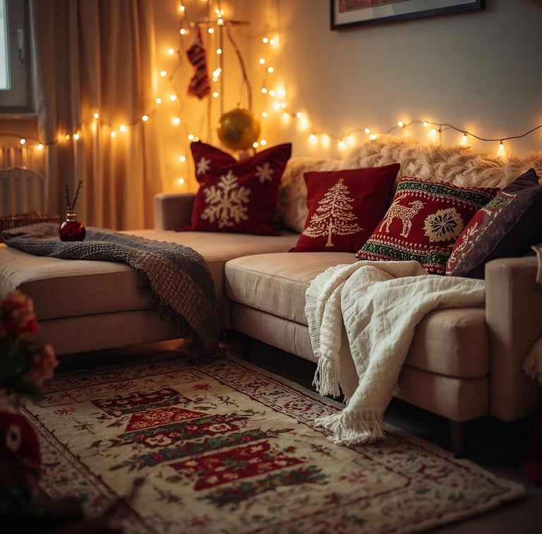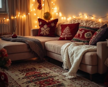 Switch out pillows, throws, and rugs for holiday-themed ones. Red, green, gold, or snowy white accents add seasonal warmth effortlessly.