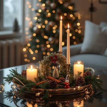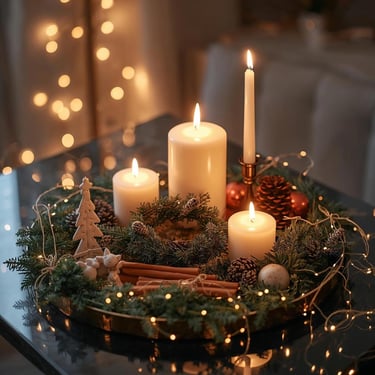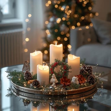 Cluster candles or LED lanterns on tables, shelves, or windowsills. They create a cozy glow and a calming holiday atmosphere.