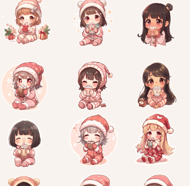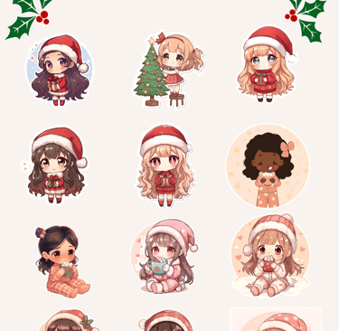 Layer stickers digitally: Combine characters, icons, and festive elements to create unique holiday scenes.